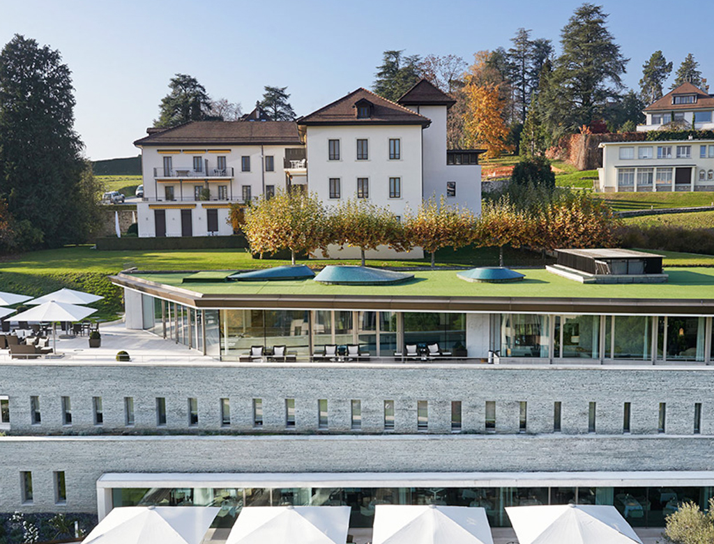 "Guests stay in one of 38 luxury rooms and suites with stunning views of the Alps and the Geneva lake.”